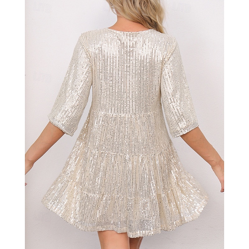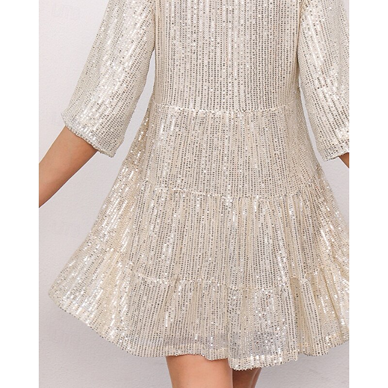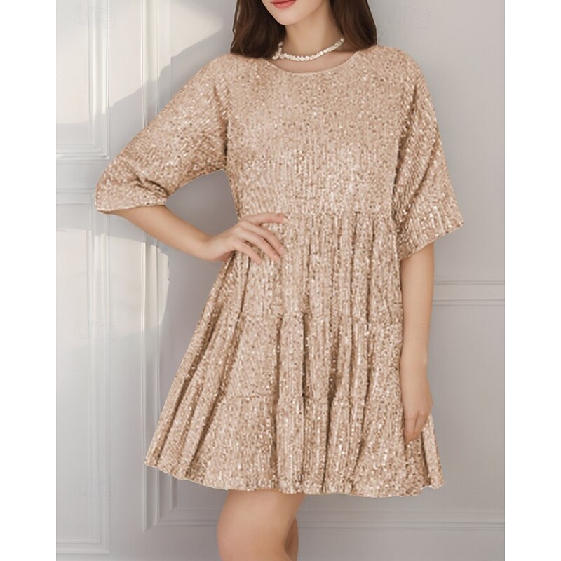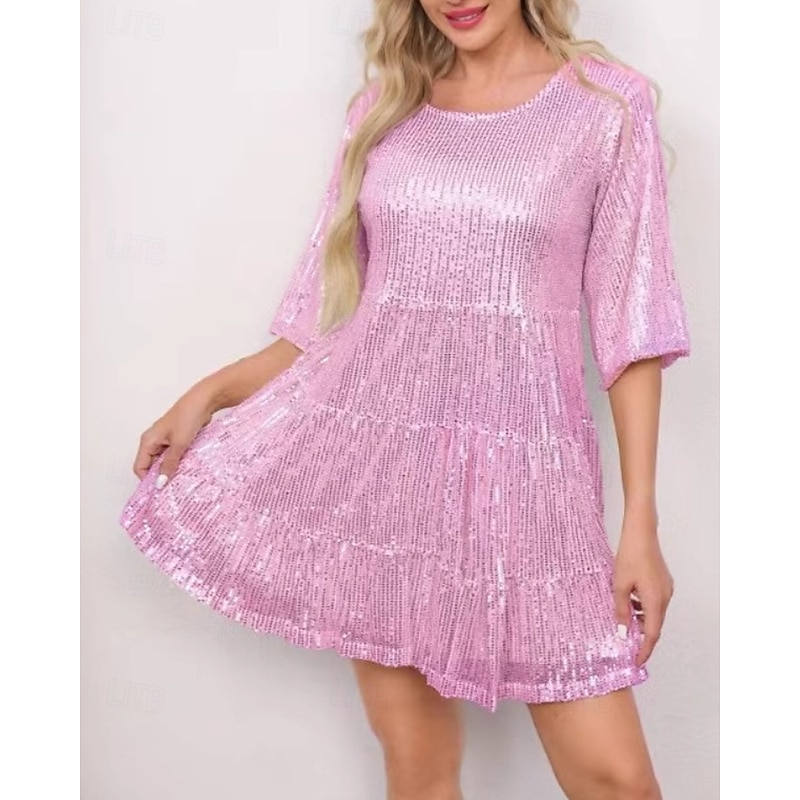 More information about Women's Mini Dress Sequin Dress Party Dress Elegant Dress Fashion Party Evening Party Date Regular Fit Plain Short Sleeve Crew Neck Black White Champagne Pink Fall