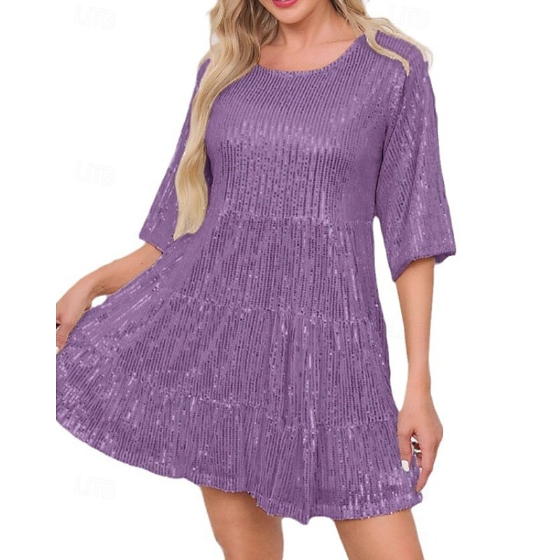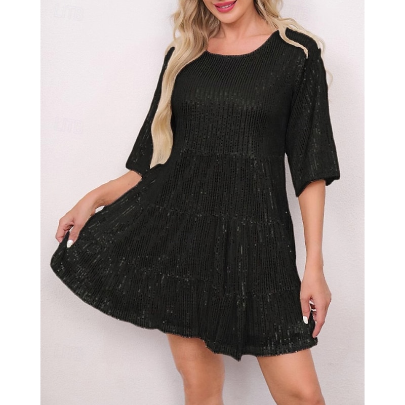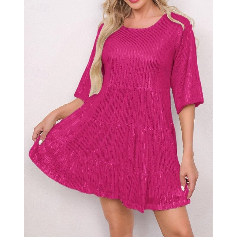 Highlights - Perfect for the fall season - Made of high-quality polyester material - Stylish short sleeve design - Specifically designed for women - Ideal for dates or parties - Features a dazzling sequin design - Classic crew neck neckline - Trendy mini dress length - Must-have party dress for any occasion