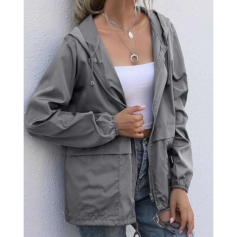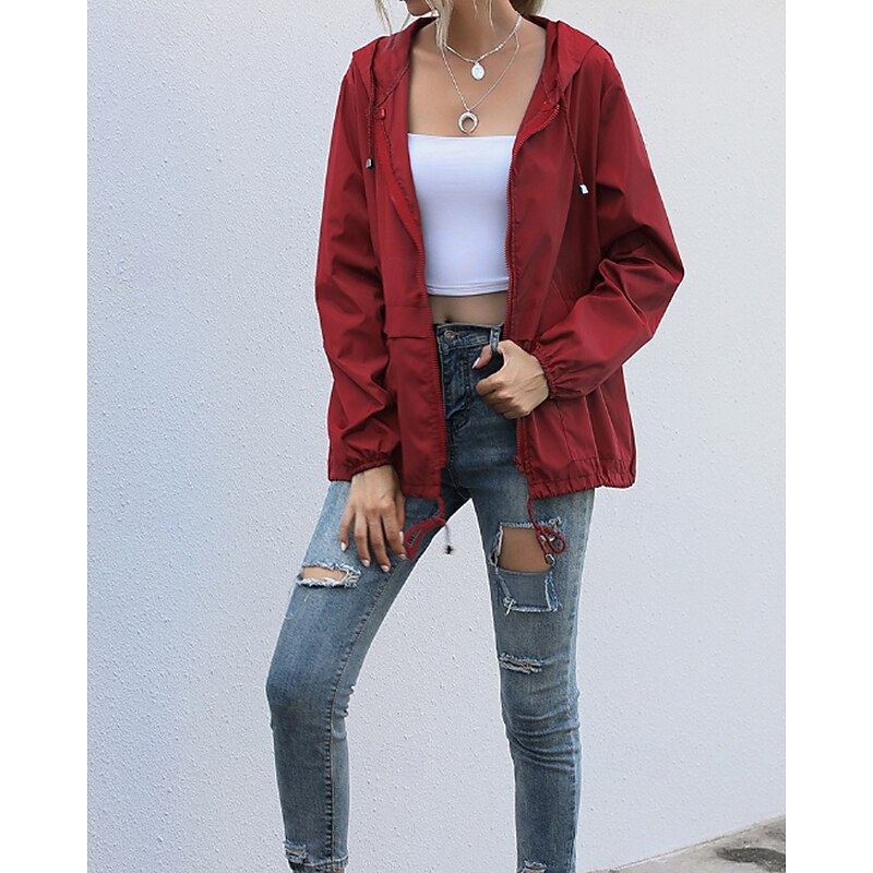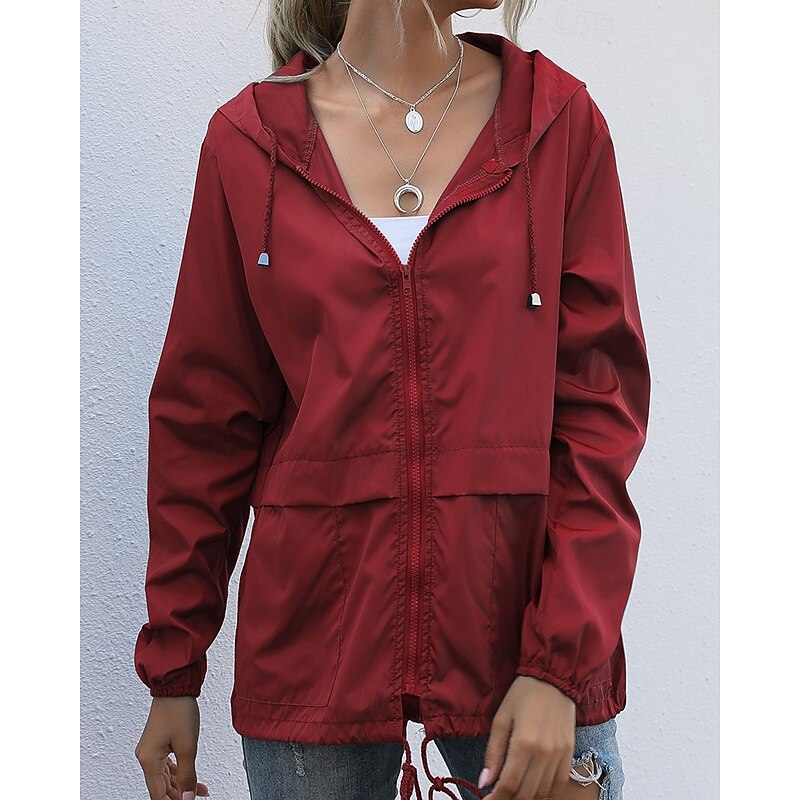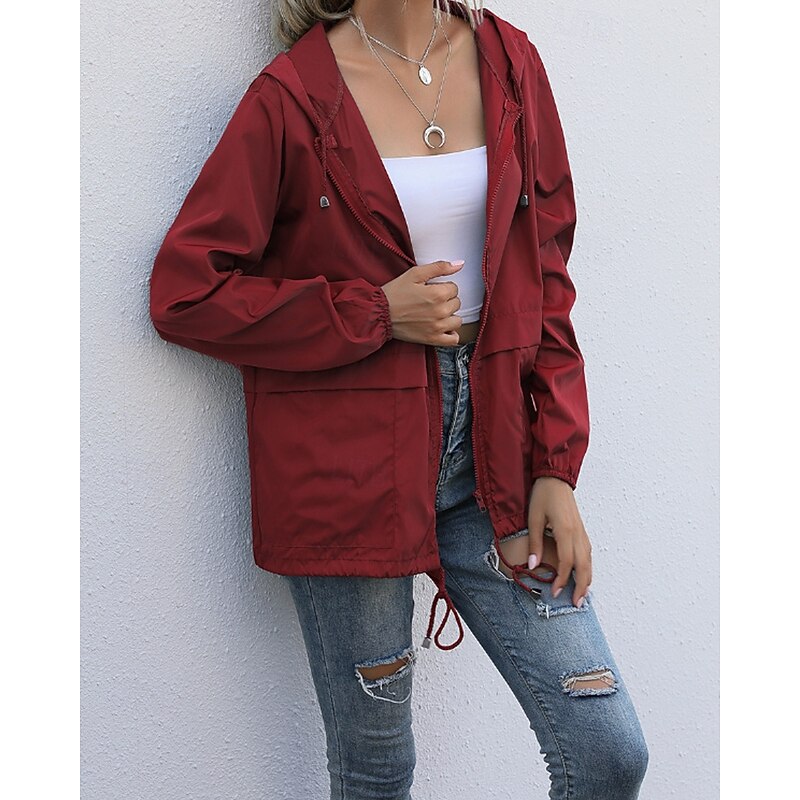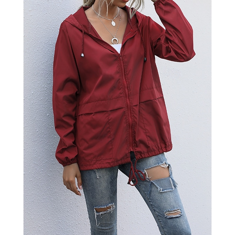 More information about Women's Hoodie Jacket Comfortable Zipper Pocket Casual Plain Vacation Daily Wear Going out Weekend Regular Hooded Regular Fit Long Sleeve Outerwear Black Wine Light Grey Spring Fall