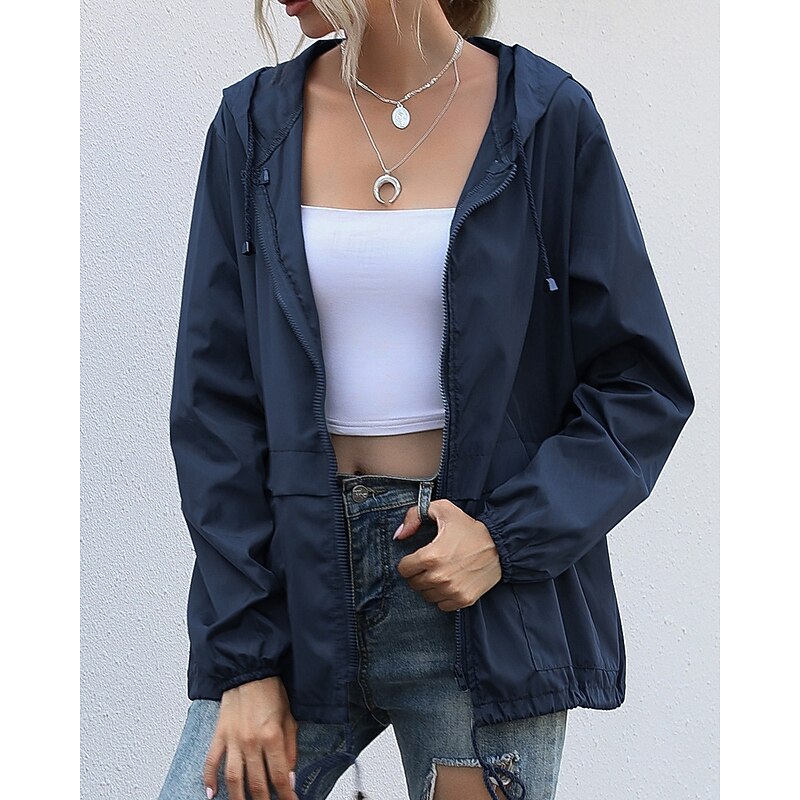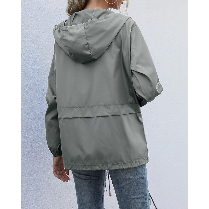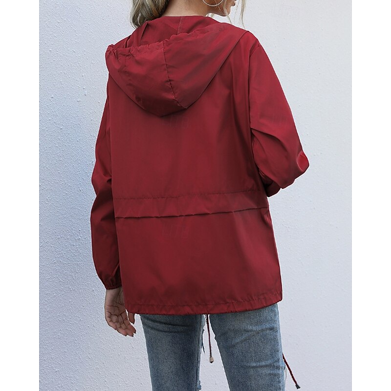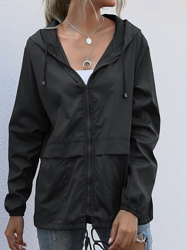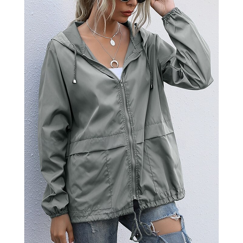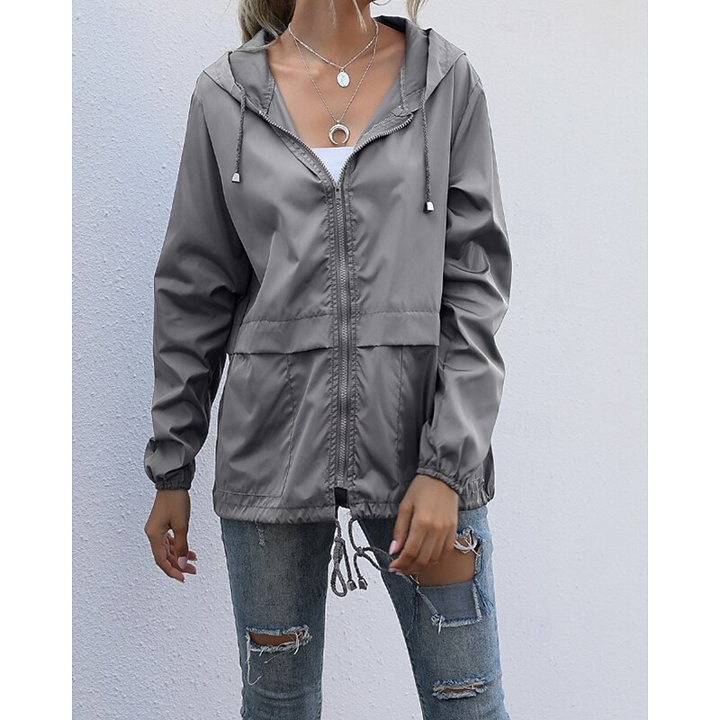 More information about Women's Hoodie Jacket Comfortable Zipper Pocket Casual Plain Vacation Daily Wear Going out Weekend Regular Hooded Regular Fit Long Sleeve Outerwear Black Wine Light Grey Spring Fall