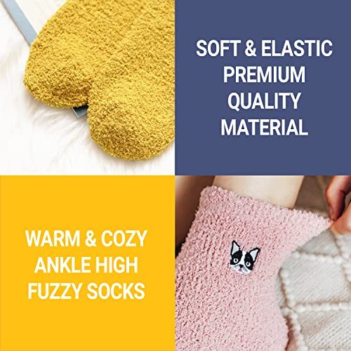 Jinny's Shoppe Women's Soft Fuzzy Fleece Warm Winter Ankle Socks Gift Set with Cute Character Embroidery 5 pack 6