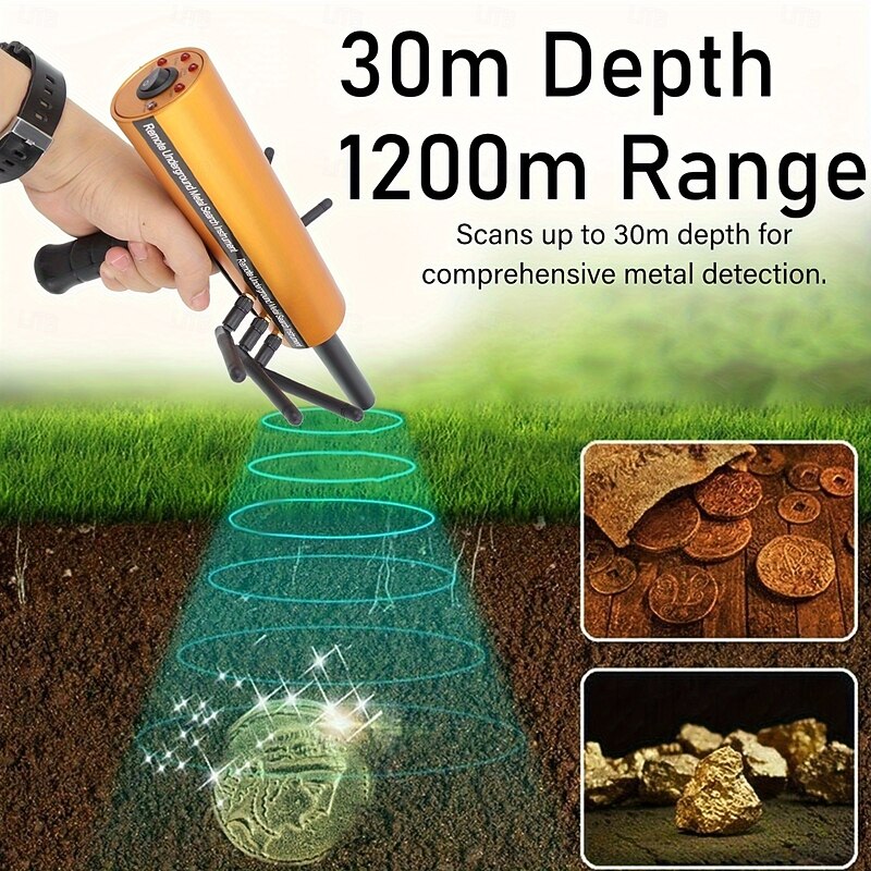 Metal Detector 30m Depth 1200m Range 6 Antenna Highly Accurate Metal Pinpointer Handheld Golden Diamond Miner Detector Metal Finding Detector Remote Search Underground Metal Device for Silvery Copper