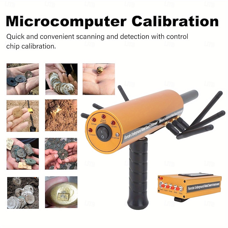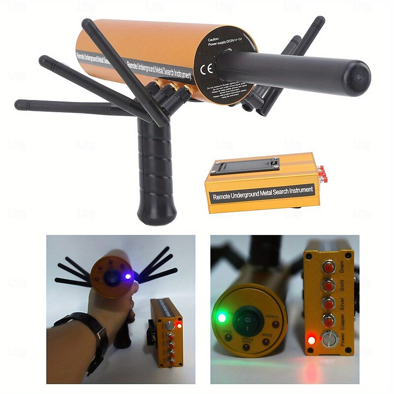 Highlights FAST AND EFFECTIVE: Using a microcomputer to control the calibration of the chip unit, the instrument and the self-inspection system can be digitized and detected quickly and easily, which greatly improves the work efficiency of treasure earth lovers and the SEARCH AND POSITION DETECTION: This underground metal detector has a first-class remote search system and accurate position detection system that breaks the traditional detection method. GOOD FEATURES: This metal detector core is the most powerful and intelligent modular operation is powerful, fast, efficient, advanced, simple and convenient. ADVANCE DETECTION METHOD: This device is the most advanced and convenient detection method and the most economical metal detection instrument. SENSITIVE AND STABLE: The underground metal detector has splendid sensitivity and stability and is easy to use and use. Personalize gold, silver, copper, jewelry. Features: Item Type: Metal Detector Material: aluminium. Colour: as shown in the picture. Weight: about 1460g Voltage: 100-240V Product size: Host: about 31 x 16.5 cm. Accessory size: about 11.5 x 7.5 x 3.5 cm. Range: approx. 800 m Depth: approximately 14 months Host battery: 1600mAh AAA NiMH rechargeable battery (comes with built-in battery) Transmitter battery: 1200mAh AAA rechargeable NiMH battery (comes with built-in battery) Transmission frequency: 5.6-6KHz Signal frequency: 360-440Hz Detection Type: Gold, Silver, Copper, Stone Charging time: 10-12 hours. Use: metal search Package includes: 1 x Host. 1 x Transmitter Accessory 1 x power supply. 1 x English User Manual Note: 1. Be sure to work strictly without interference in the wild environment of the jungle and maintain good stability. 2. The host and transmitter can only be detected by turning on the switch.