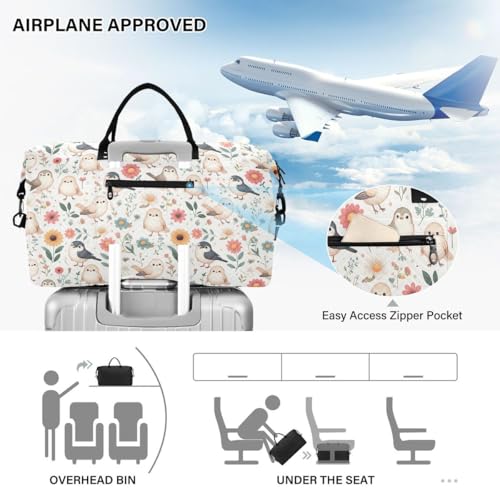 Cute Bird Blossom Flower Travel Duffle Bag Gym Bag Weekender Bags with Toiletry Bag Travel Trip Tote Bag 7