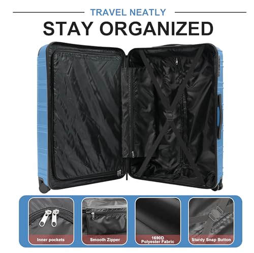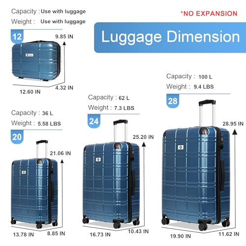 Luggage Sets 4 Piece, ABS PC Lightweight Suitcases with Wheels, Hardshell Luggage Sets Carry on Luggage with TSA Lock Blue (12in 20in 24in 28in) 4