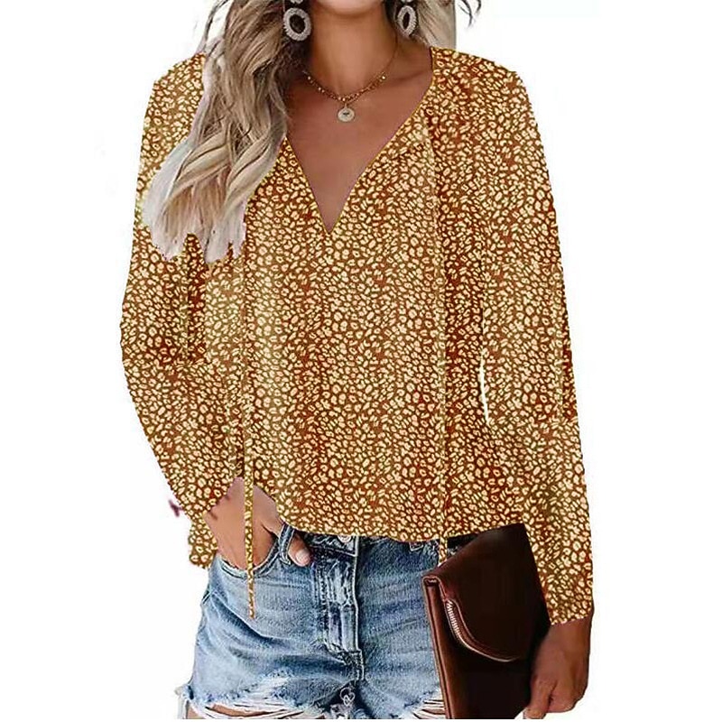 HOT ! Women's Shirt Lace Shirt Blouse Dressy Tops Leopard Polka Dot Streetwear Casual Long Sleeve V Neck Regular Tops Casual Daily Holiday Lace up Print Black Light Green Pink Wine Blue Spring Fall