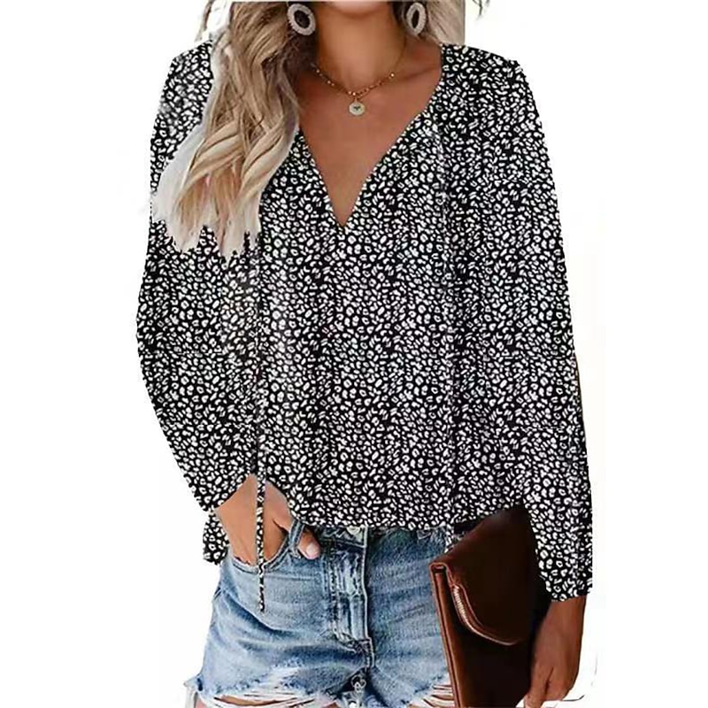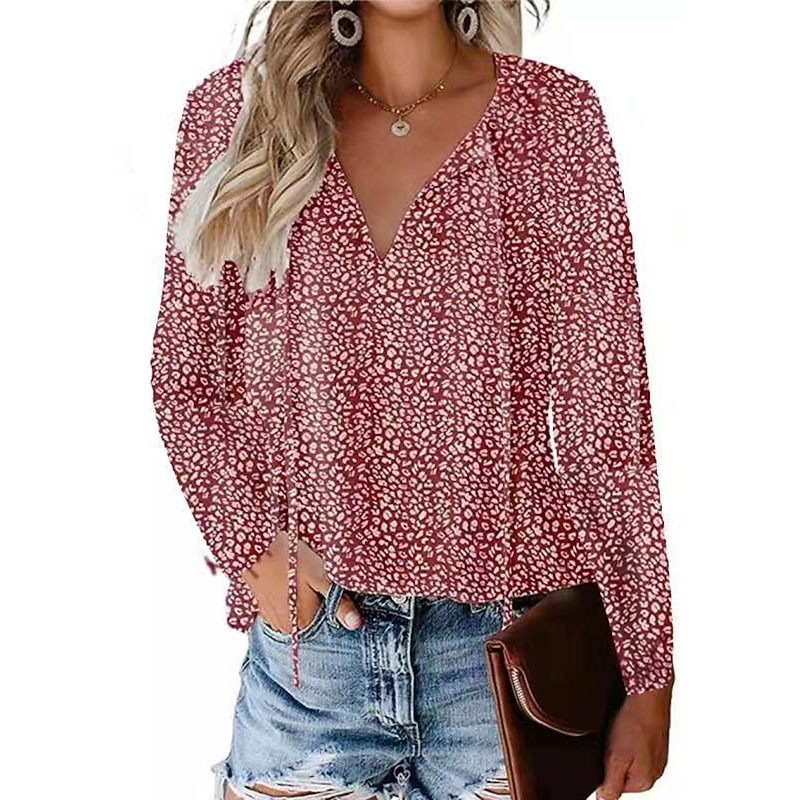 More information about Women's Shirt Lace Shirt Blouse Dressy Tops Leopard Polka Dot Streetwear Casual Long Sleeve V Neck Regular Tops Casual Daily Holiday Lace up Print Black Light Green Pink Wine Blue Spring Fall