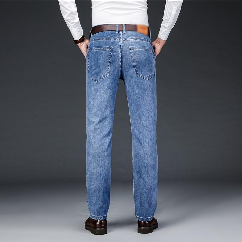 Straight Leg Four Season High-Waisted Business Casual Solid Color Jeans 1