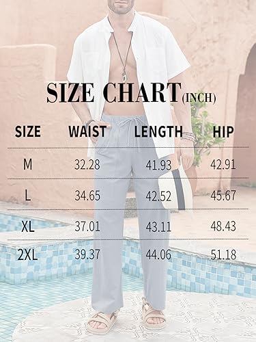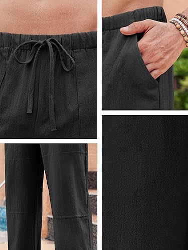 More information about PASLTER Mens Cotton Linen Pants Casual Drawstring Elastic Waist Loose Fit Beach Yoga Pants with Pockets