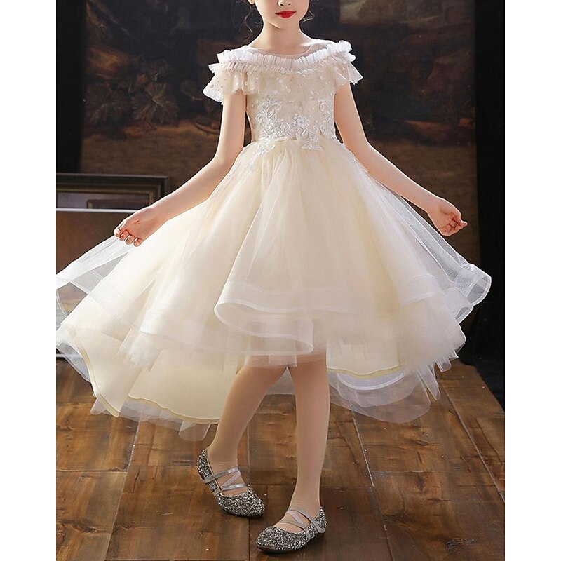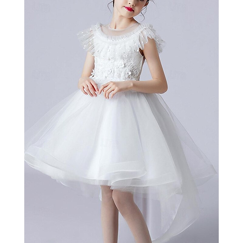 More information about Girls' 3D Solid Color Party Dress Sleeveless Summer Performance Party Birthday Princess Beautiful Sweet Kids 4-12 Years Party Dress Swing Dress Tulle Dress Asymmetrical Regular Fit