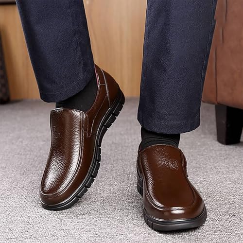 HOT ! Mens Leather Dress Casual Shoes for Men, Slip-On Comfortable Lightweight Flexible Fit for Elderly, Perfect for Business Casual & Daily Wear