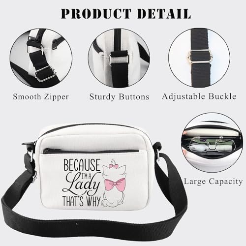 BDPWSS Cat Lover Crossbody Bag Because I'M A Lady That's Why Cats Ladies Gift Magic Kingdom Gift Cat Movie Merchandise 2
