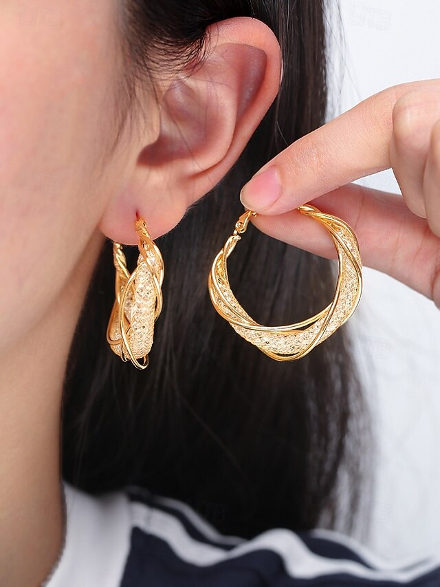 $11.99 - Women's Gold-Tone Twisted Hoop Earrings with Intricate Detailing – Elegant Jewelry for Parties, Weddings and Formal Occasions 2025. Shop for cheap Women's Earring online? Buy at lightinthebox.com on sale today!