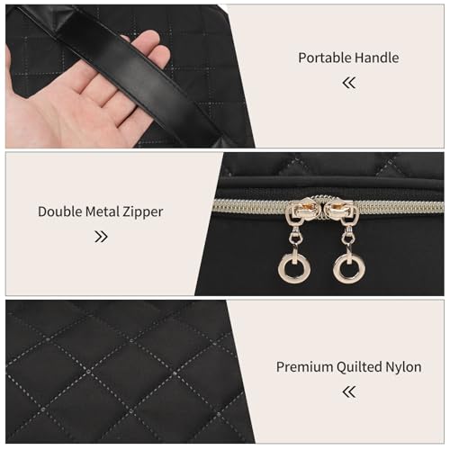 • Thick Padding: The surface fabric of the nail supplies organizer is made of quilted nylon, while the inside is filled with sponge. This thick padding material protects your nail polish from hitting and breaking