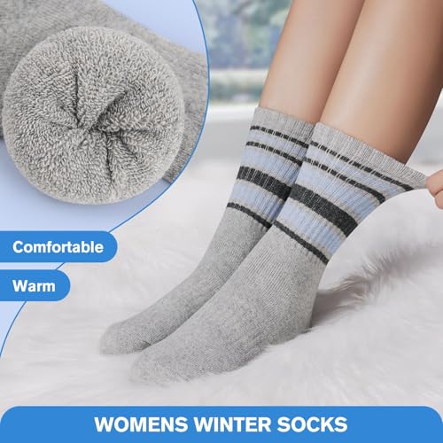 SIMIYA 5 Pairs Merino Wool Socks for Women Winter Thick Warm Hiking Socks Women Thermal Crew Cushion Socks 6