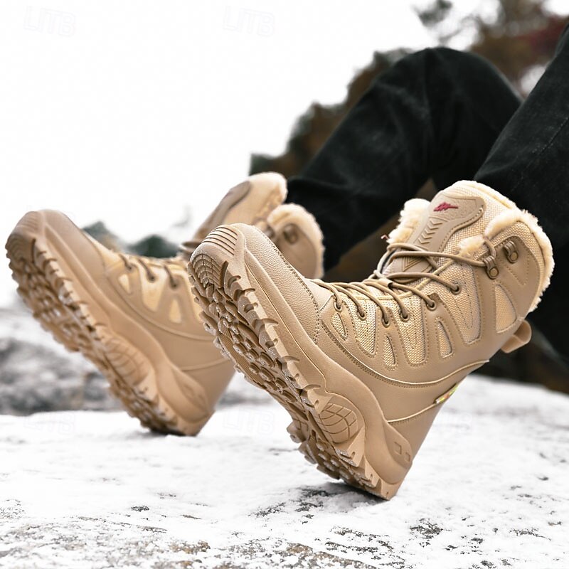 Men's Winter Tactical Boots – Warm Faux Fur Lined, Waterproof High Top Snow Boots with Anti-Slip Sole, Ideal for Outdoor Hiking and Cold Weather 25