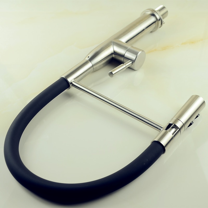 More information about Single Handle Kitchen Faucet,One Hole Nickel Brushed Pull-out/Pull-down Rotatable Vessel Stainless Steel Contemporary Kitchen Taps with Cold and Hot Water