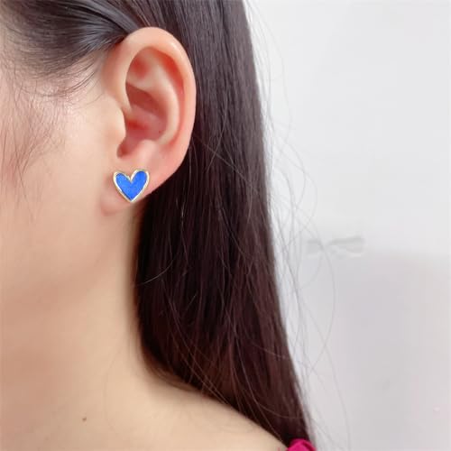 HOT ! Dainty Blue Heart Small Stud Earrings for Women Cute Sterling Silver Post Gold Plated Hearted Shaped Hypoallergenic Tiny Studs Fashion Y2K Jewelry