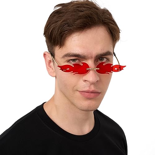 HOT ! Spooktacular Creations Red Flame Glasses, Rimless Red Fire Glasses, Halloween Fire Sunglasses for All, Flame Sunglasses for Halloween Costumes Devil Accessories