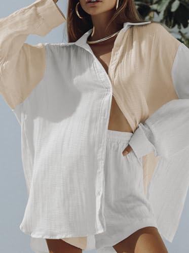 Linsery 2 Piece Summer Outfits Button Down Shirt Top and Shorts Casual Lounge Sets 4