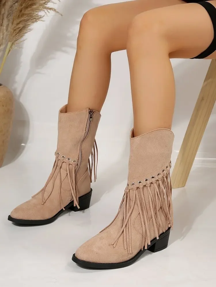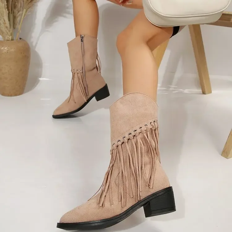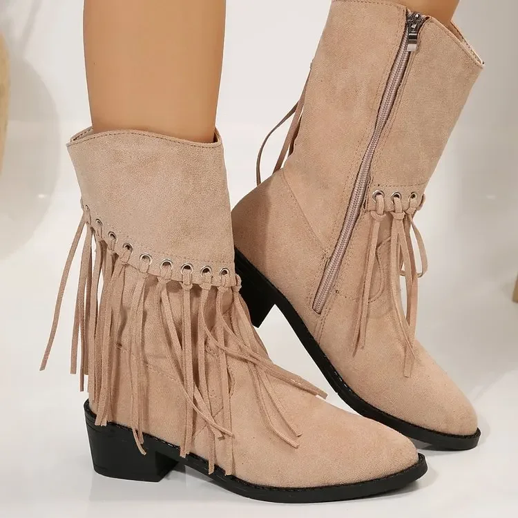 Boots Women Vintage Tassel Cowgirl Fashion Western Booties
