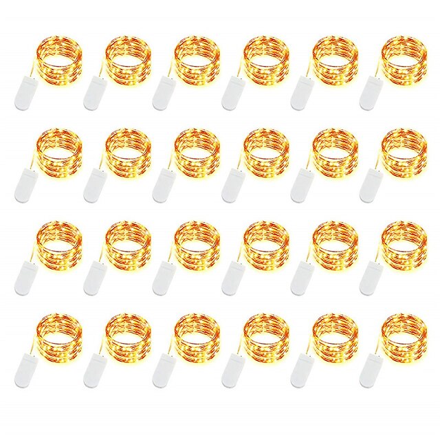 24pcs Led String Lights Outdoor String Lights 2m 20leds CR2032 Battery Power Operated Copper Wire Fairy Lights for DIY Christmas Home Garland Bar Decoration 10