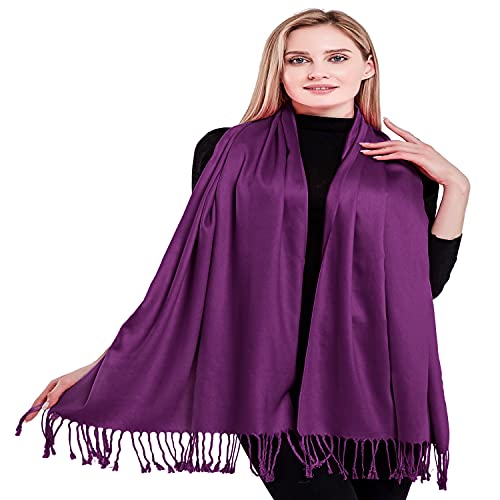 CJ Apparel Purple Solid Color Tassels Design Nepalese Shawl Scarf Wrap Stole Throw Head Wrap Pashmina Hand Made in Nepal New 2