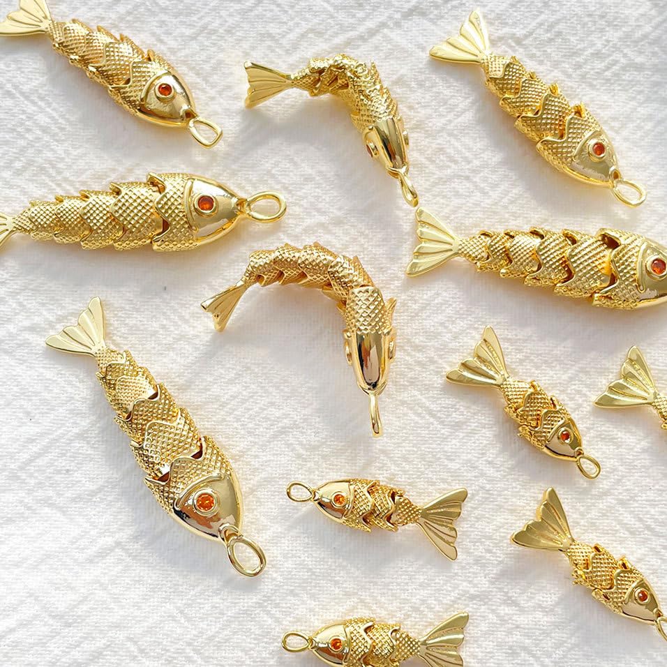 HOT ! LIU JUN Movable 3D Articulated Fish Necklace, Gold Pave Fish Pisces Sea Lover Lucky Fish Pendant Necklaces For Women Men Summer Beach Trendy Jewelry Gifts