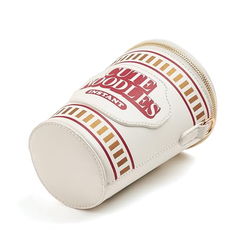 • UNIQUE DESIGN: Fashionable crossbody bag styled as an instant noodle cup, featuring red and brown stripe details and gold-tone hardware for a playful, eye-catching look