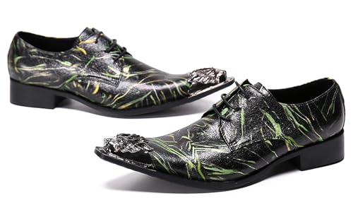 Santimon Mens Western Pointed Toe Leather Lace Up Dress Shoes Fashion Casual Metal Tip Oxford 7