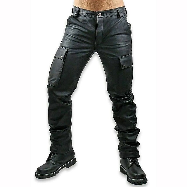 More information about Men's Trousers Faux Leather Pants Casual Pants Pocket Plain Comfort Soft Outdoor Daily Going out Fashion Casual Black