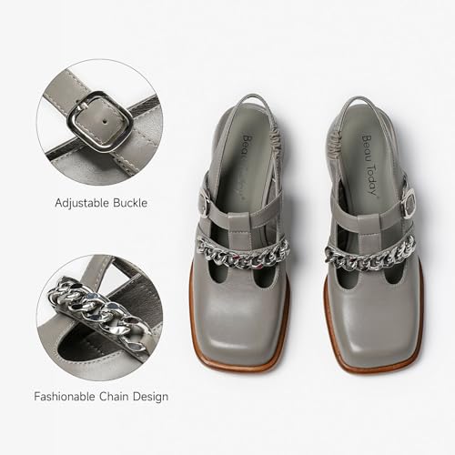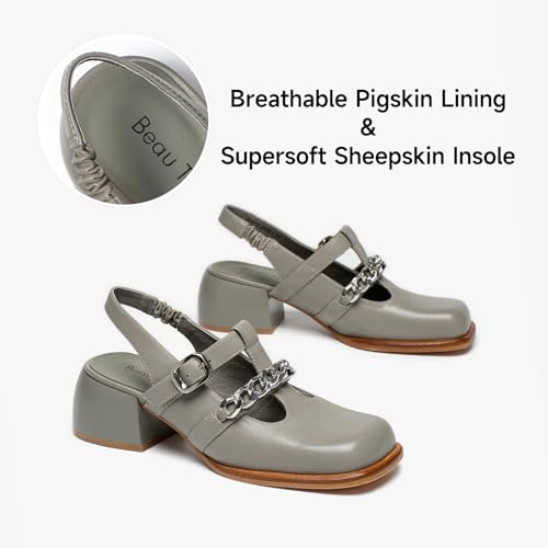 More information about BEAU TODAY Slingback Heels for Women Square Toe Mary Jane Shoes Leather Chain Chunky Block Heel Sandals Closed Toe Dress Loafers Business Casual Shoes Women