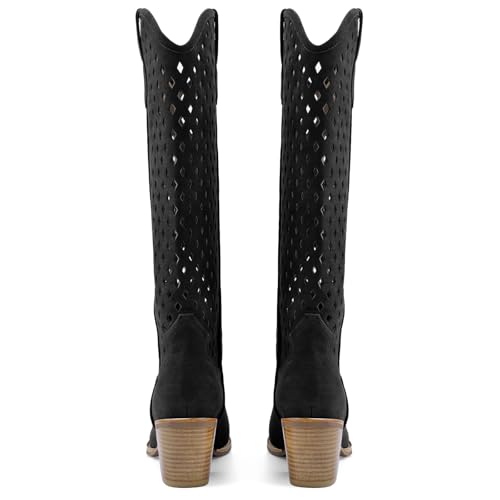 • Statement: These cowboy knee high boots feature bold diamond cutouts that elevate your western wardrobe with edgy style and detailed craftsmanship