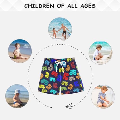 Boys Swim Trunks Colorful Monster Truck Beach Board Shorts Quick Dry Swimsuit Bathing Suits with Mesh Lining 4