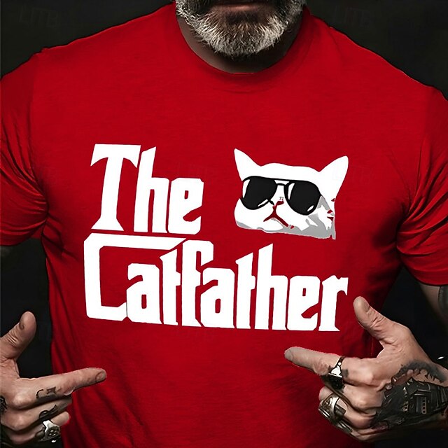 Men's The Catfather Graphic T-Shirt Funny Cat Lover Pun Tee 5