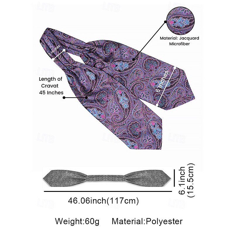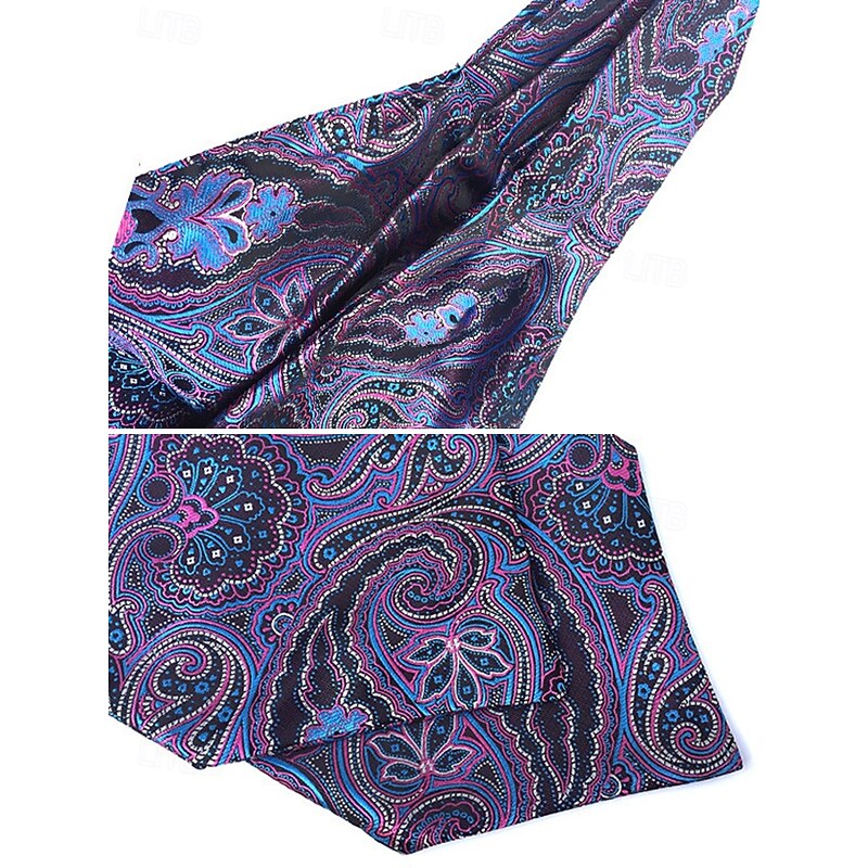 Men's Paisley Ascot Tie - Elegant Faux Silk Cravat for Formal Occasions, Weddings, and Parties - Vintage Floral Pattern Necktie 12