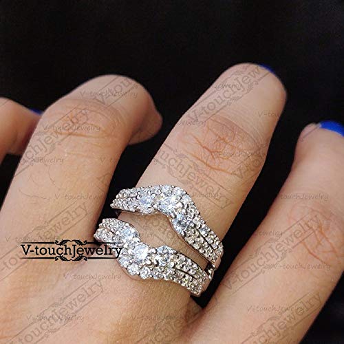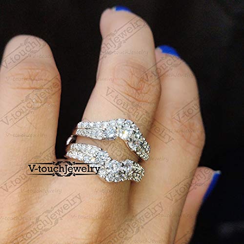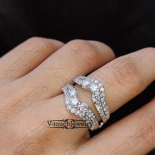 V Touch Round Cut D/VVS1 Diamond Engagement Enhancer Double Wedding Band Guard Ring for Women 14K Gold Plated 925 Sterling Silver 5