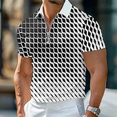 More information about Men's Geometric Hawaiian Polo Shirts Golf Shirt Short Sleeve Polo Shirts Collared Shirts Casual Beach Wear Vacation Wear Party Outfits 3D Print Quarter Zip Polo Summer Spring White