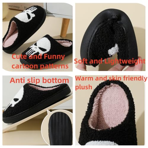 Womens Mens Slippers Retro Memory Foam Cute Cartoon Skeleton Ghost Pumpkin Plush Fluffy Warm Fur Lined slippers, Slip-Resistant Indoor House Home Winter Shoes 5