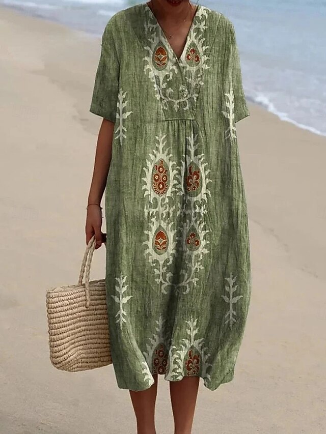 More information about Women's Midi Dress Sundress A Line Dress Vacation Casual Beach Party Going out Beach Loose Fit Floral Graphic Tribal Short Sleeve V Neck Blue Green Summer Spring