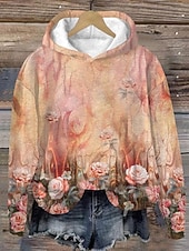 More information about Women's Pullover Hoodie Sweatshirt Floral Streetwear Casual Long Sleeve Hooded Regular Tops Street Holiday Pocket Print Pink Wine Beige Fall Winter