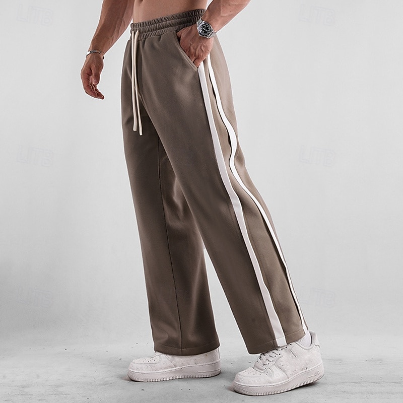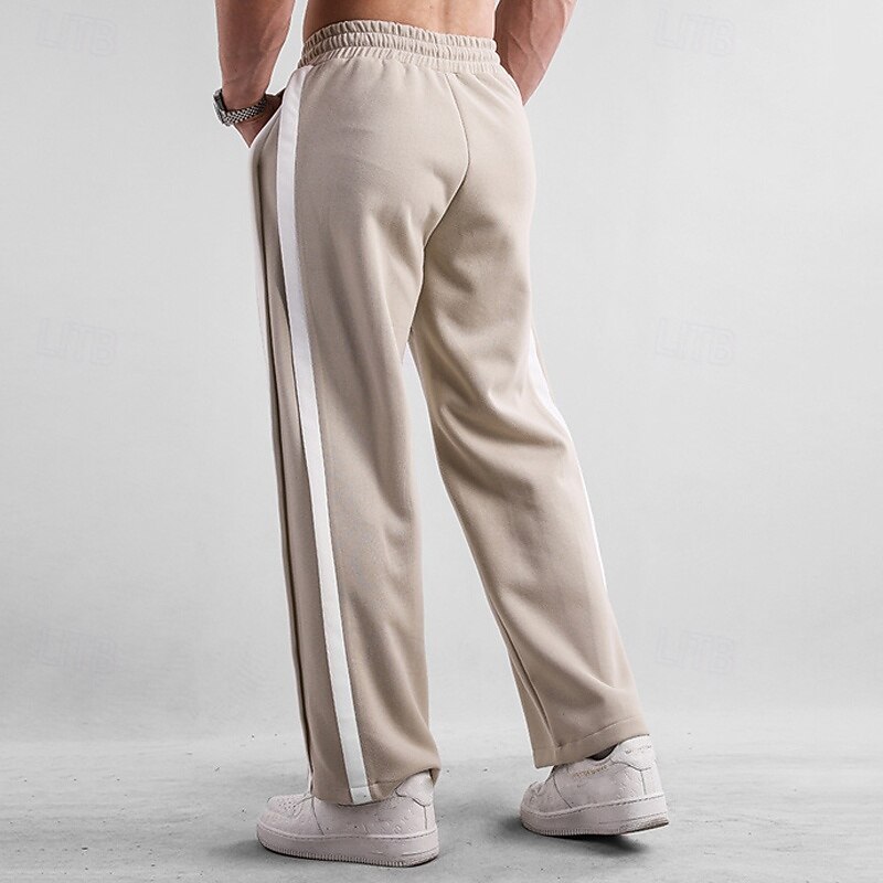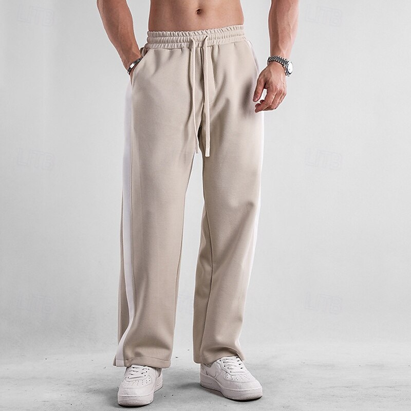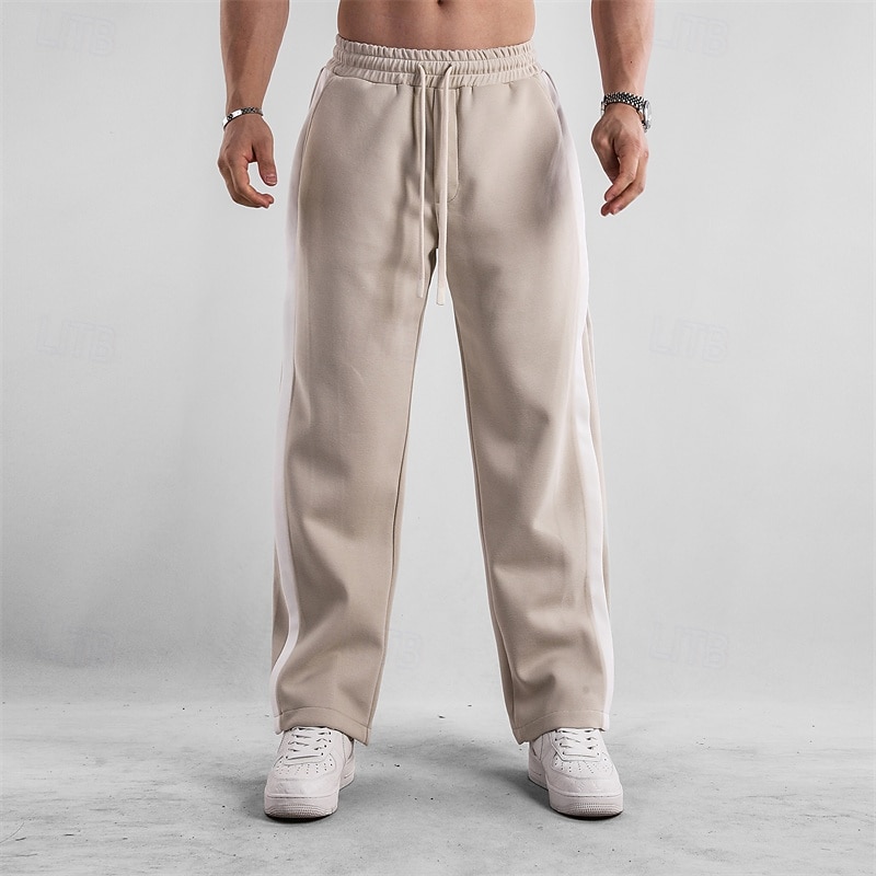 Highlights [Fabric]: Made from a comfortable and high-quality 75% cotton blend, these men's jogger pants offer a micro-elastic texture, ensuring breathability and durability for any activity. The fabric's quality promises a smooth feel against the skin, making these pants a go-to choice for both spring and fall. [Fit]: Designed in a regular fit, these jogger trousers provide a relaxed, straight-leg silhouette that caters to easy movement and utmost comfort. The mid-waist design further complements the natural shape, allowing for a comfortable everyday wear. [Design Highlights]: Featuring a stylish color block pattern, these jogger pants include contrasting white side stripes that run the length of the pants, adding a sporty, modern flair. The elastic waistband is adjustable with a practical drawstring, and additional functional pockets enhance both style and utility. [Occasions]: Perfect for a variety of settings, these versatile sweatpants are ideal for sports, outdoor activities, or daily casual wear. Whether heading to the gym or running errands, they are suited to complement an active lifestyle with ease. [Size Range]: Available in sizes M, L, XL, 2XL, and 3XL, these pants accommodate a broad range of body types, ensuring a comfortable and stylish fit for everyone.