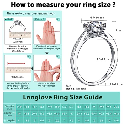 More information about Moissanite Rings for Women, Sterling Silver Lab Created Diamond Engagement Promise Wedding Ring Bands for Her (1.5 carat, 9.5)