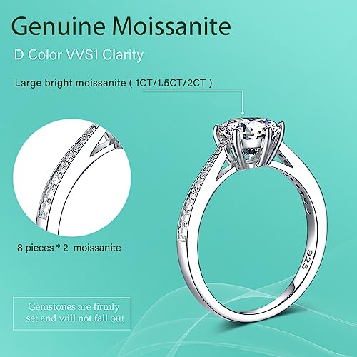 Moissanite Rings for Women, Sterling Silver Lab Created Diamond Engagement Promise Wedding Ring Bands for Her (1.5 carat, 9.5) 5
