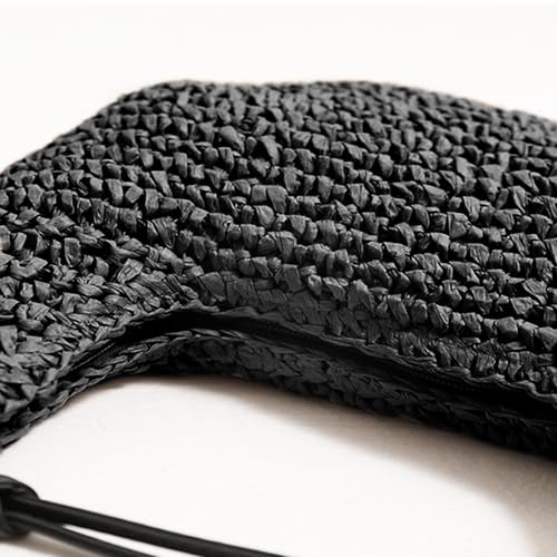 Straw Bag for Women, Orbicular Beach Bag, Cute Handbag, Hand-Woven Bags Suitable for Vacation Travel Daily(Black) 7