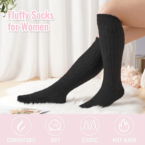 Moon Wood Women's Fuzzy Knee High Winter Warm Plush Leg Warmers Thermal Slouch Socks 6