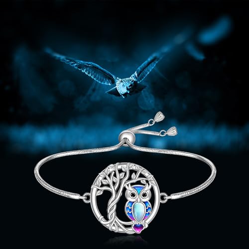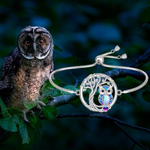 Fenthring Owl Bracelet Sterling Silver Tree of Life Owl Bracelet for Women Moonstone Owls Jewelry Graduation Birthday Christmas Gifts 1