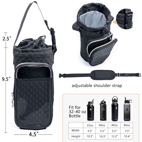 • DIMENSION — The magnetic water bottle gym bag measures D4.5" x 9.5". It is an excellent fit for Hydro Flask 32-oz water bottles, vacuum bottles, sports bottles, and stainless steel water bottles of various brands, ranging from 20oz to 32 oz and 40oz in size.