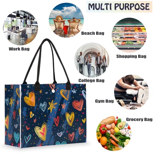HOT ! Abstract Star Heart Tote Bag for Women Large Beach Bag Reusable Tote Bags for Work Travel Beach Shopping
