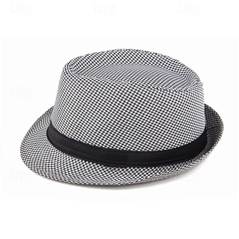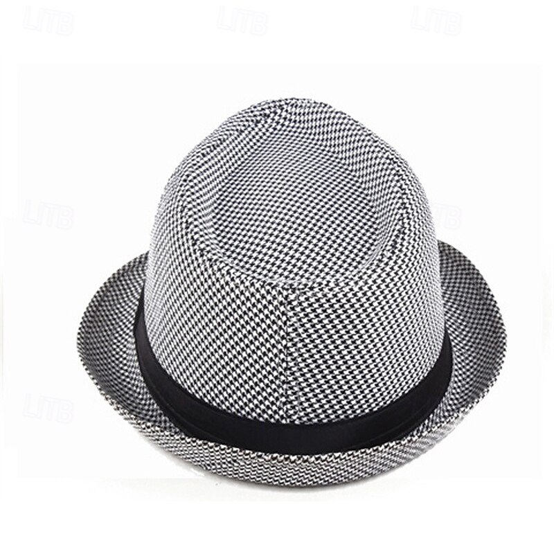 Men's Kentucky Derby Hat Sun Hat Wild Brim Hat Top Hat Black Yellow Polyester Fashion Casual Street Daily Houndstooth Breathable 6